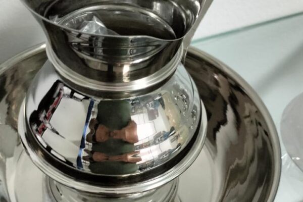 cálices, copones, viajeras, incesnarios, crismeras, juegos de lavabo, velas y velones en parafina liquida, porta viáticos, palias, corporales y purificadores.